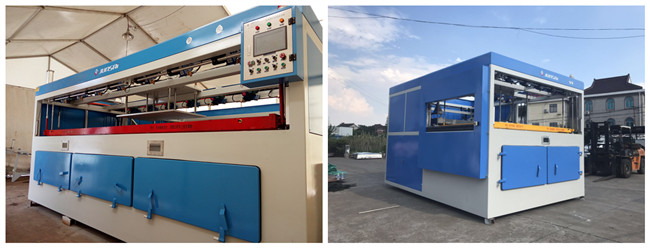 2.    ACF系列大高速吸塑機(jī)。是市場(chǎng)上使用吸塑機(jī)型號(hào),在自動(dòng)化程度、產(chǎn)量、人工使用量、機(jī)器價(jià)格親民,較為容易接受的吸塑機(jī)設(shè)備。工藝步驟:卷材自動(dòng)拉料、加熱、真空吸塑、整版裁切、裁斷機(jī)分切。