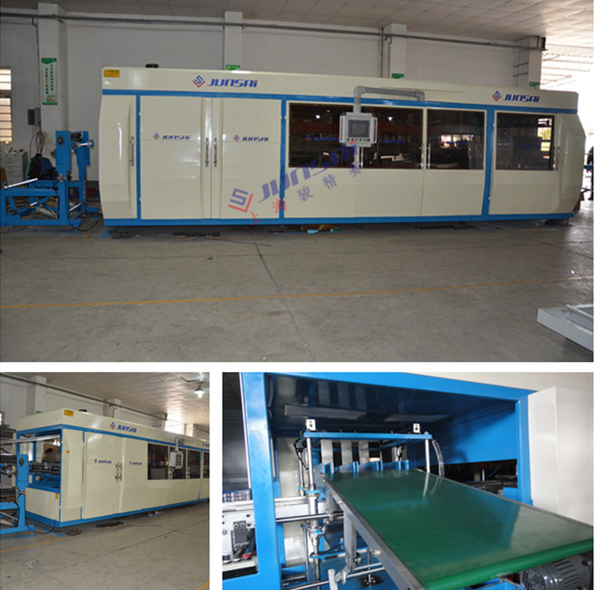 駿賽產(chǎn)品部新推出正負(fù)壓成型沖切一體吸塑機(jī),該設(shè)備為吸塑加工行業(yè)節(jié)約人力成本、提供品質(zhì)及提高產(chǎn)能奠定了先決條件。吸塑裁切一體機(jī)操作方便、結(jié)構(gòu)穩(wěn)固、占地面積小、通用性強(qiáng),從自動(dòng)上料卷到自動(dòng)執(zhí)行正負(fù)壓吸塑到自動(dòng)沖切到人工收取成品,一個(gè)人可完成,正負(fù)壓吸塑機(jī)的運(yùn)作方式在常規(guī)吸塑機(jī)基礎(chǔ)上在快很多,效率提升較多,使加工制品單件成本下降較多,保障了用戶的競爭力,設(shè)備可根據(jù)客戶需求定制。